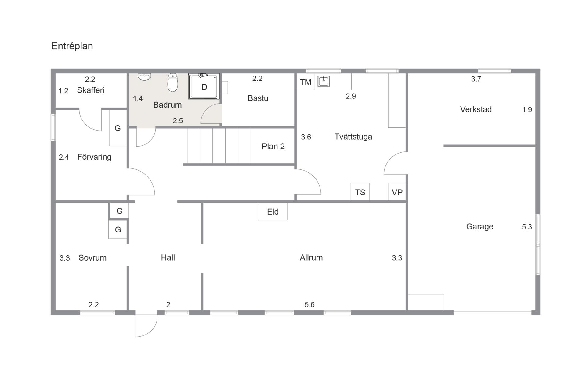 Från HALLEN nås även TVÄTTSTUGAN som leder vidare till GARAGE med FÖRRÅD intill