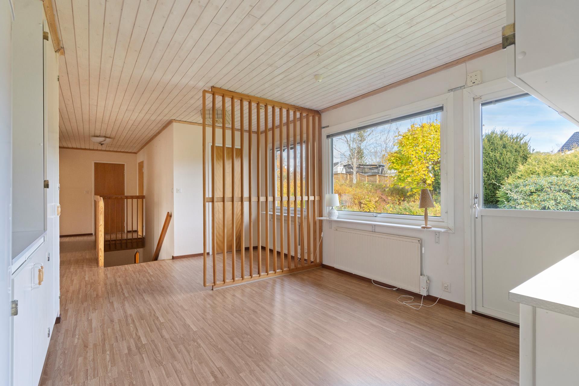 Belägen på en gata utan genomfartstrafik, i ett naturnära och barnvänligt område hittar ni denna rymliga bostad! Huset erbjuder många välplanerade ytor i form av fyra sovrum, allrum med öppen spis, stort kök med plats för matbord och två helkaklade badrum. Här finner ni även ett ljust vardagsrum med stora fönsterpartier och vackert parkettgolv. Två uteplatser på var sin sida av huset och asfalterad uppfart med garage i huskropp. Huset omringas av en mysig trädgård med gräsmatta, träd och prydnadsbuskar.