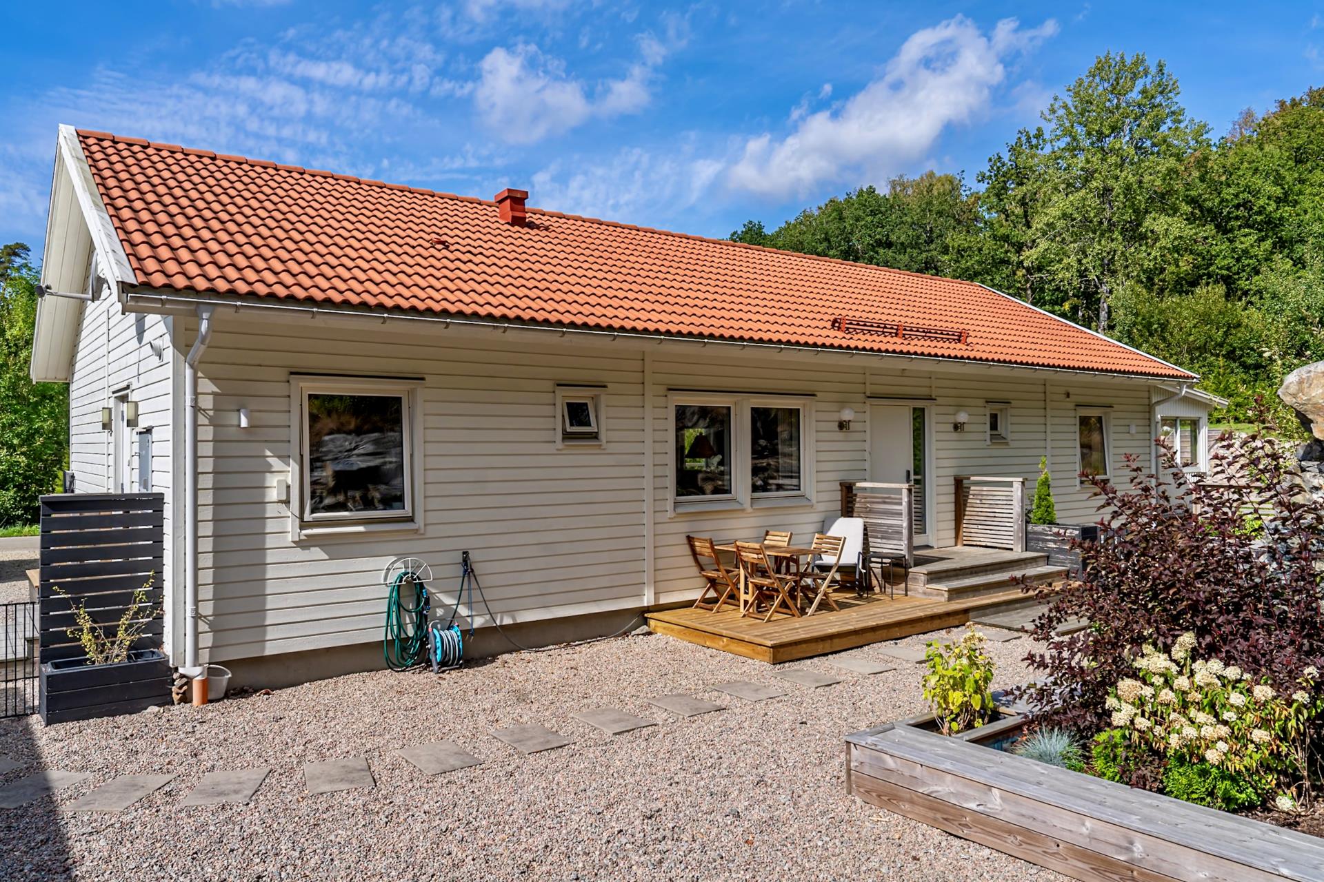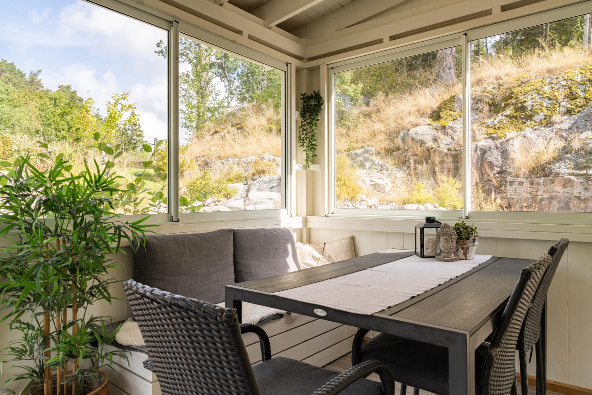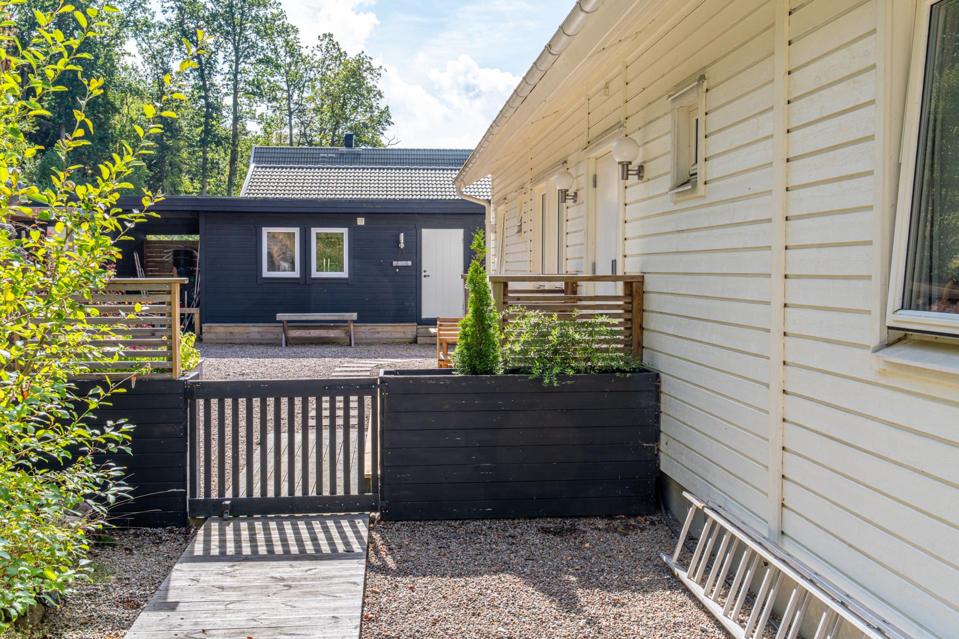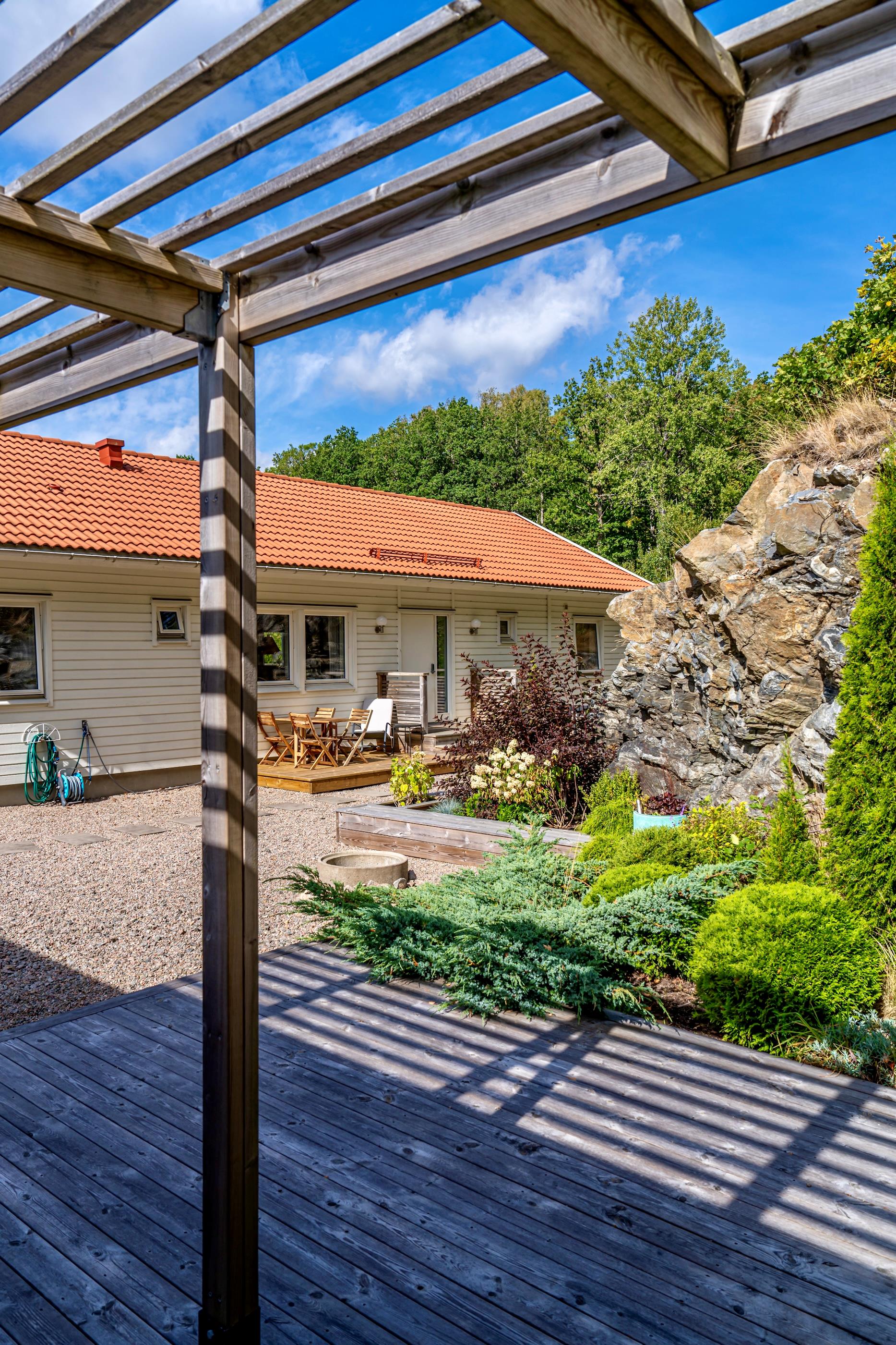 En-plansvilla uppförd 2018 med ett underbart, lantligt läge men endast några minuter från centrala staden. Här bor familjen lugnt och skyddat med sköna promenadstråk och närhet till Gustafsberg och Byfjorden. Här njuter Du av solens strålar från morgon till kväll från flera altaner och här finns dessutom ett uterum om ca 30 kvm. Ljust och luftigt med allt i ett plan. Huvudbyggnaden har öppen lösning mellan kök och vardagsrum, tre sovrum med möjlighet att göra ytterligare ett sovrum, två badrum, allrum/tv-rum med utgång till uterummet, tvättstuga/groventré. Insynskyddad innergård ramas in av naturen och två sidobyggnader om 20 respektive 15 kvm. Den större även förberedd för WC och pentry. Perfekt för uthyrning, tonåringen eller egen verksamhet. Solpaneler och frånluftsvärmepump med värmeåtervinning borgar för en fantastisk driftsekonomi och här finns också laddare för elbil. Välkommen på visning! Vi ses!