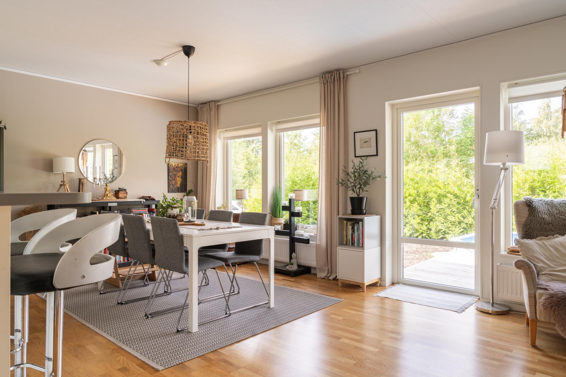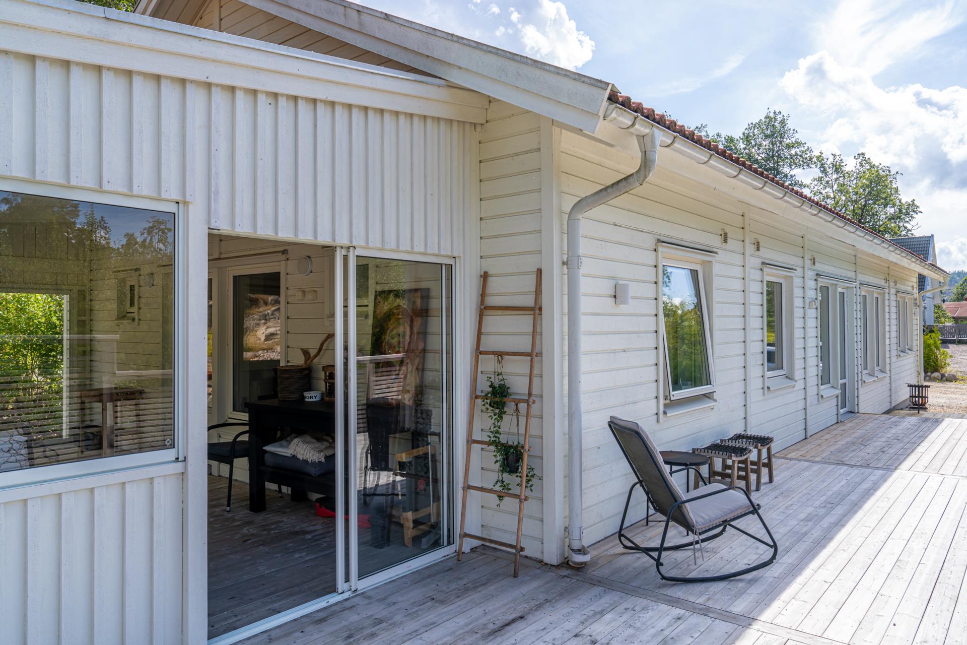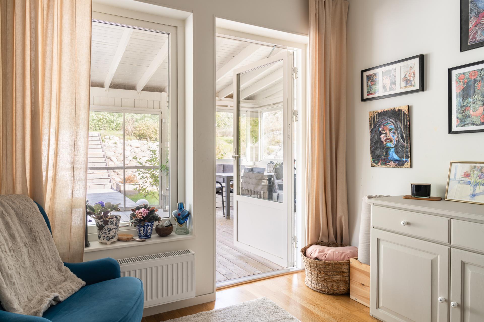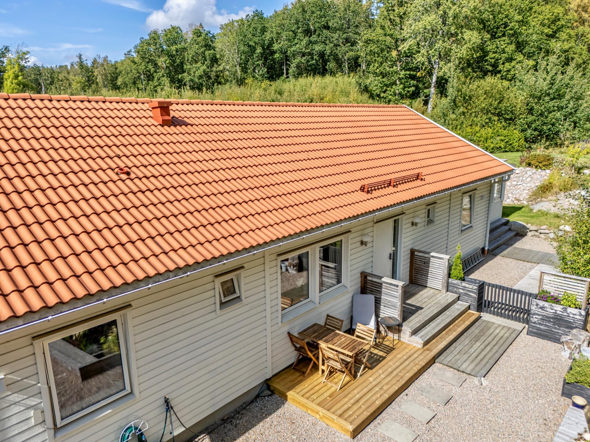 En-plansvilla uppförd 2018 med ett underbart, lantligt läge men endast några minuter från centrala staden. Här bor familjen lugnt och skyddat med sköna promenadstråk och närhet till Gustafsberg och Byfjorden. Här njuter Du av solens strålar från morgon till kväll från flera altaner och här finns dessutom ett uterum om ca 30 kvm. Ljust och luftigt med allt i ett plan. Huvudbyggnaden har öppen lösning mellan kök och vardagsrum, tre sovrum med möjlighet att göra ytterligare ett sovrum, två badrum, allrum/tv-rum med utgång till uterummet, tvättstuga/groventré. Insynskyddad innergård ramas in av naturen och två sidobyggnader om 20 respektive 15 kvm. Den större även förberedd för WC och pentry. Perfekt för uthyrning, tonåringen eller egen verksamhet. Solpaneler och frånluftsvärmepump med värmeåtervinning borgar för en fantastisk driftsekonomi och här finns också laddare för elbil. Välkommen på visning! Vi ses!