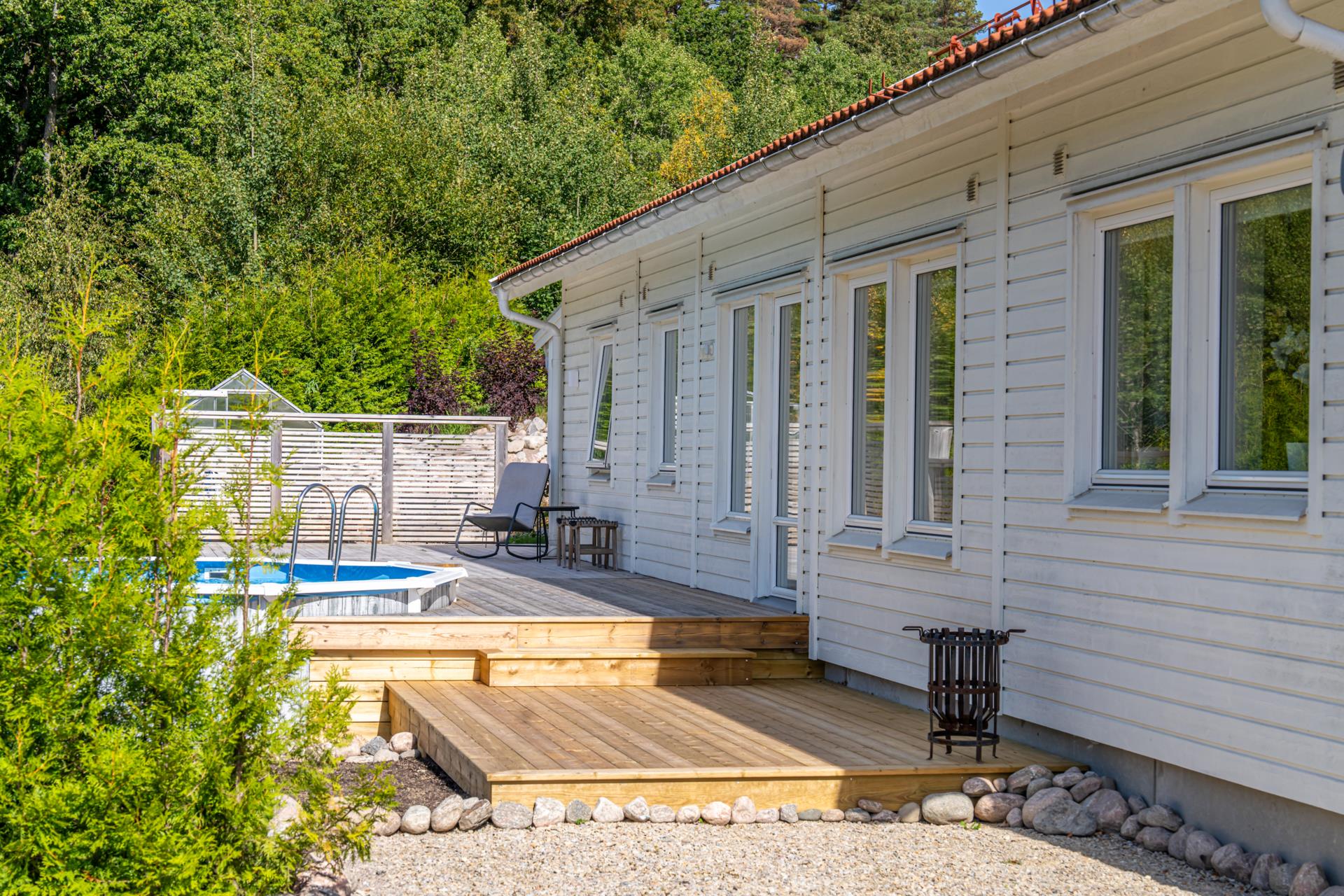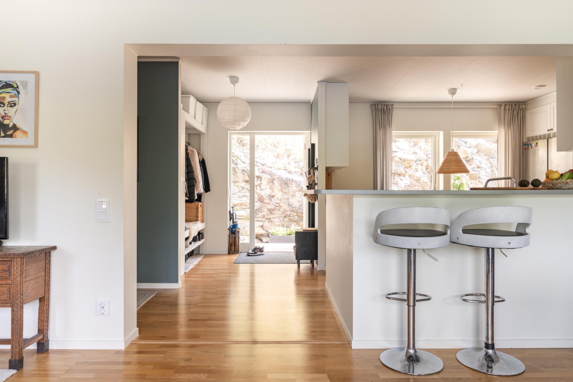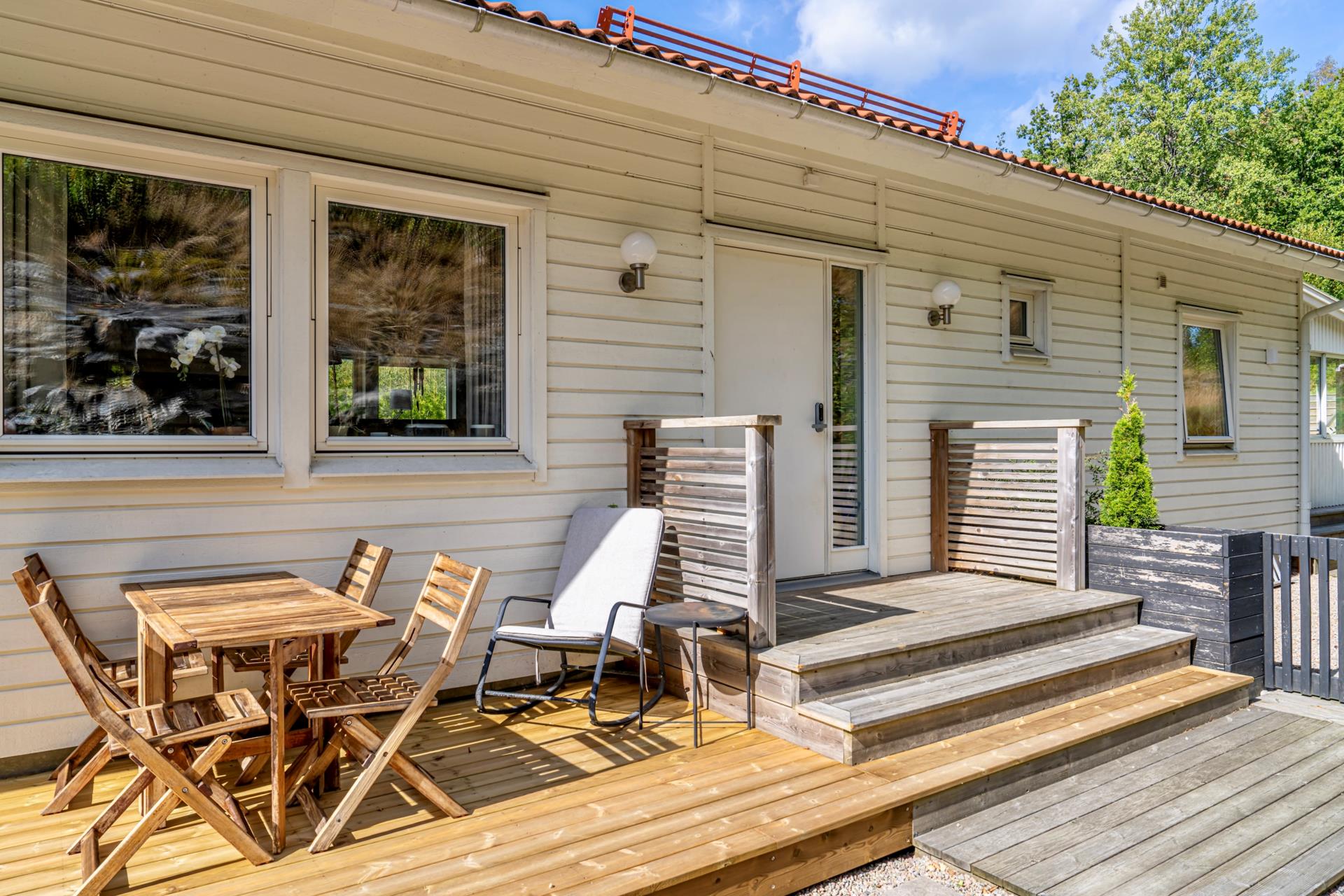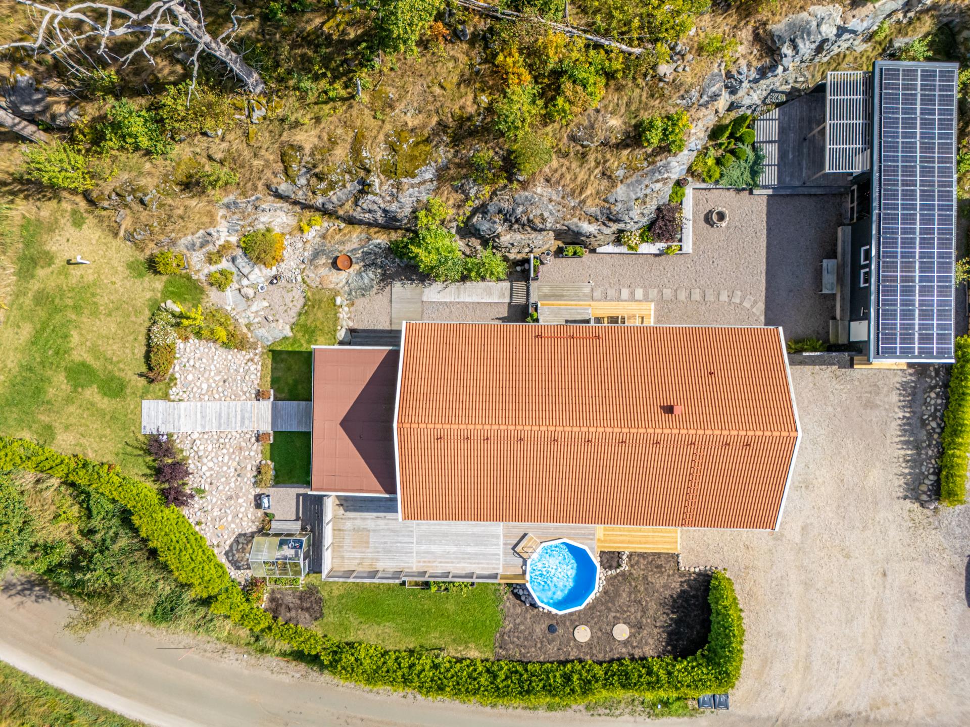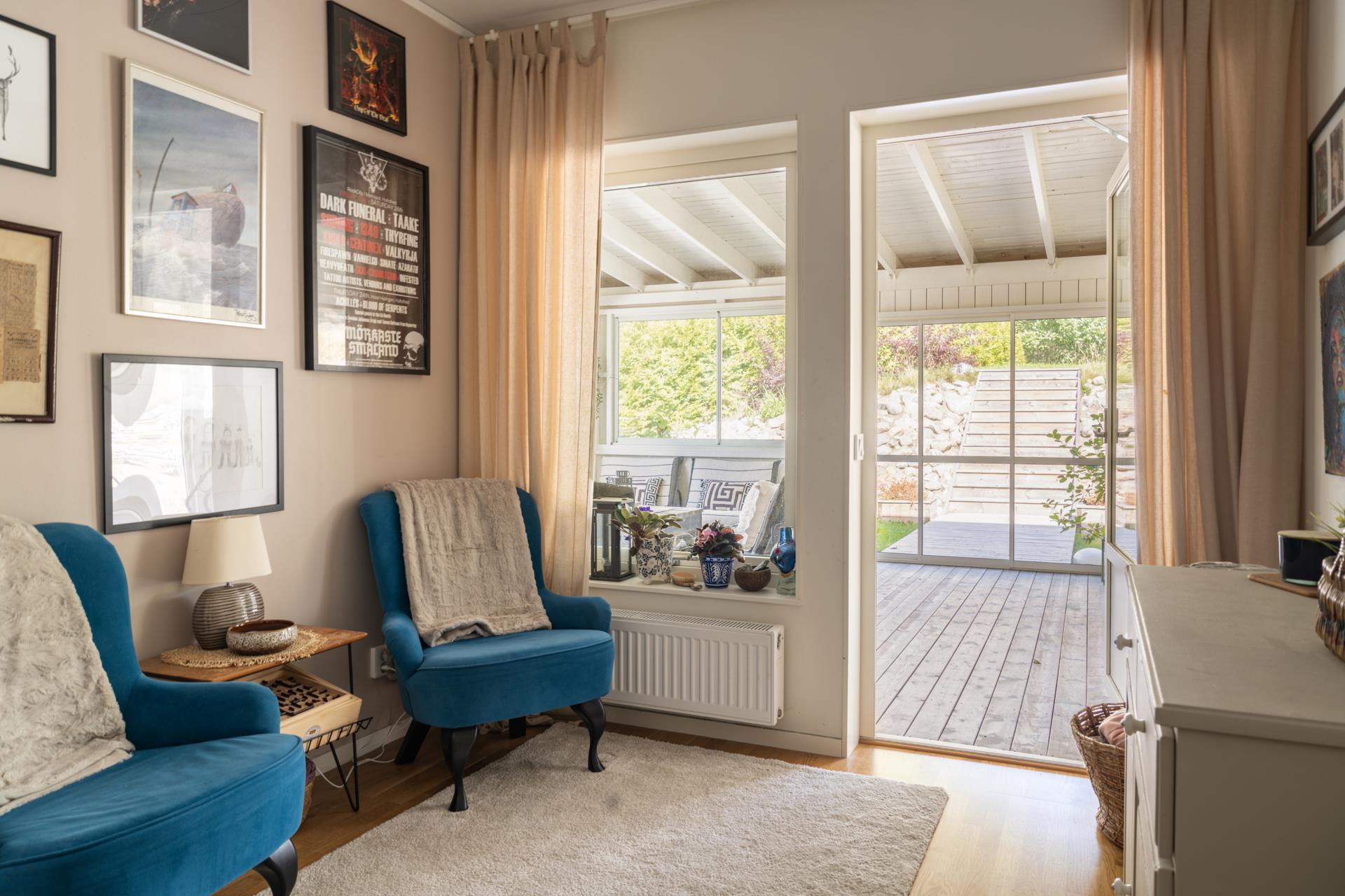 En-plansvilla uppförd 2018 med ett underbart, lantligt läge men endast några minuter från centrala staden. Här bor familjen lugnt och skyddat med sköna promenadstråk och närhet till Gustafsberg och Byfjorden. Här njuter Du av solens strålar från morgon till kväll från flera altaner och här finns dessutom ett uterum om ca 30 kvm. Ljust och luftigt med allt i ett plan. Huvudbyggnaden har öppen lösning mellan kök och vardagsrum, tre sovrum med möjlighet att göra ytterligare ett sovrum, två badrum, allrum/tv-rum med utgång till uterummet, tvättstuga/groventré. Insynskyddad innergård ramas in av naturen och två sidobyggnader om 20 respektive 15 kvm. Den större även förberedd för WC och pentry. Perfekt för uthyrning, tonåringen eller egen verksamhet. Solpaneler och frånluftsvärmepump med värmeåtervinning borgar för en fantastisk driftsekonomi och här finns också laddare för elbil. Välkommen på visning! Vi ses!