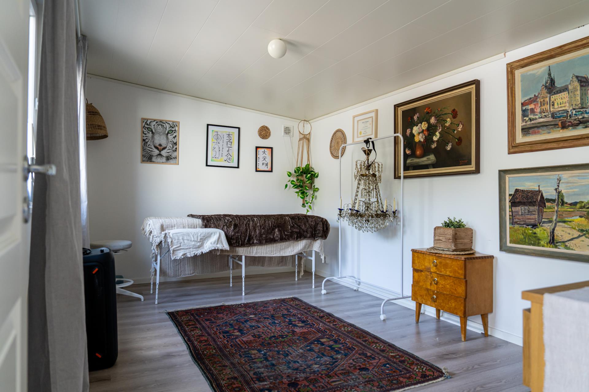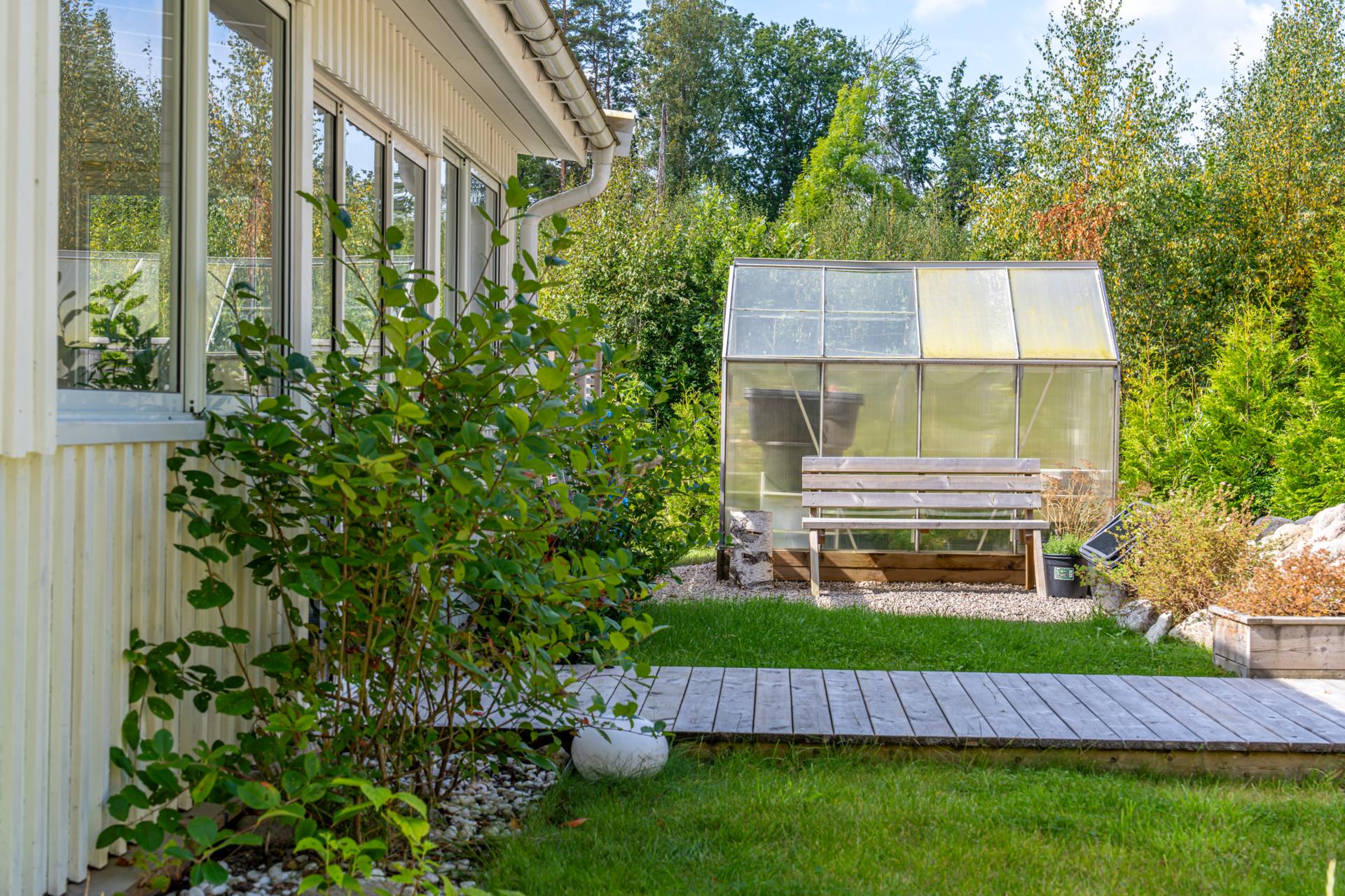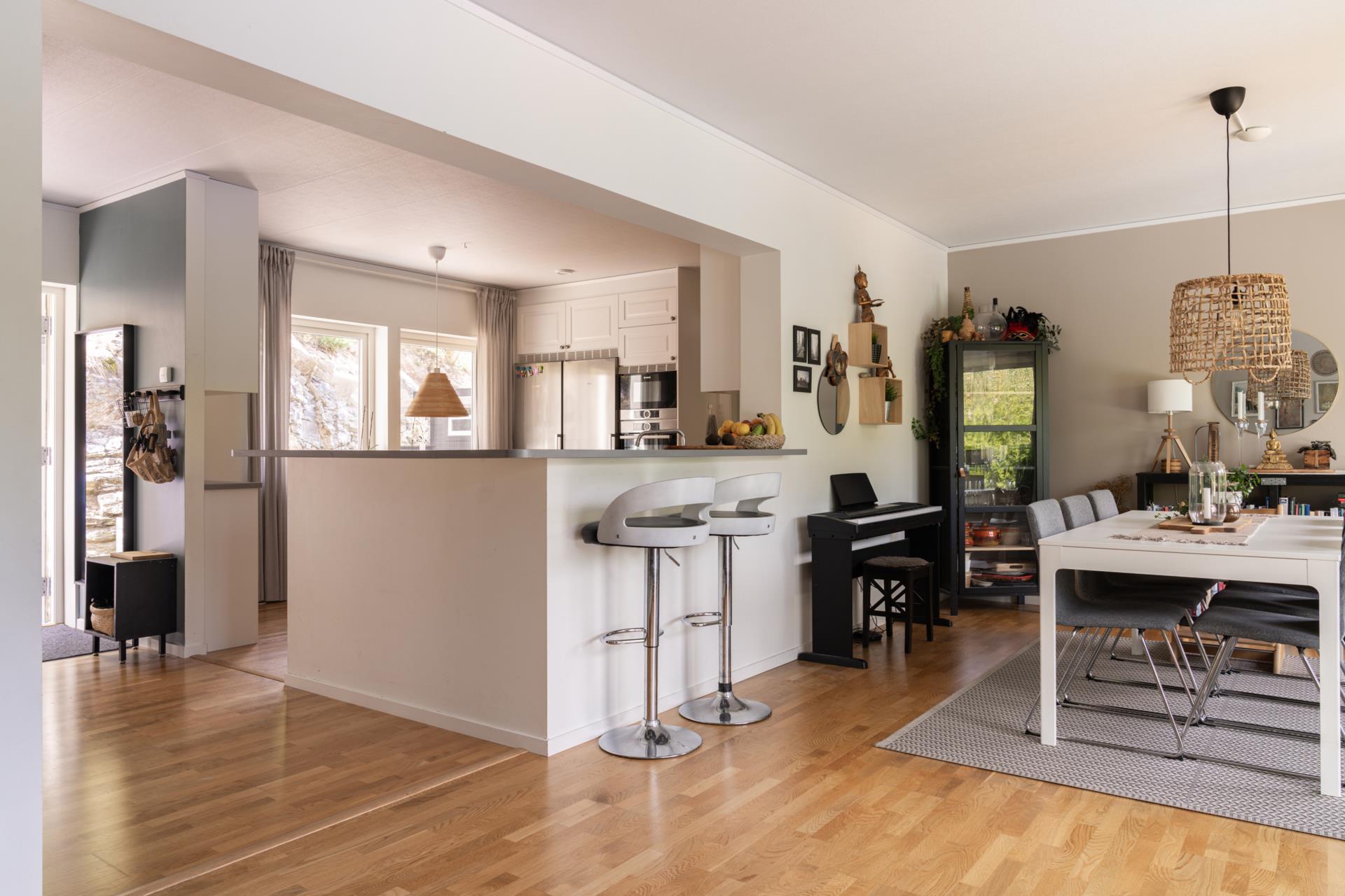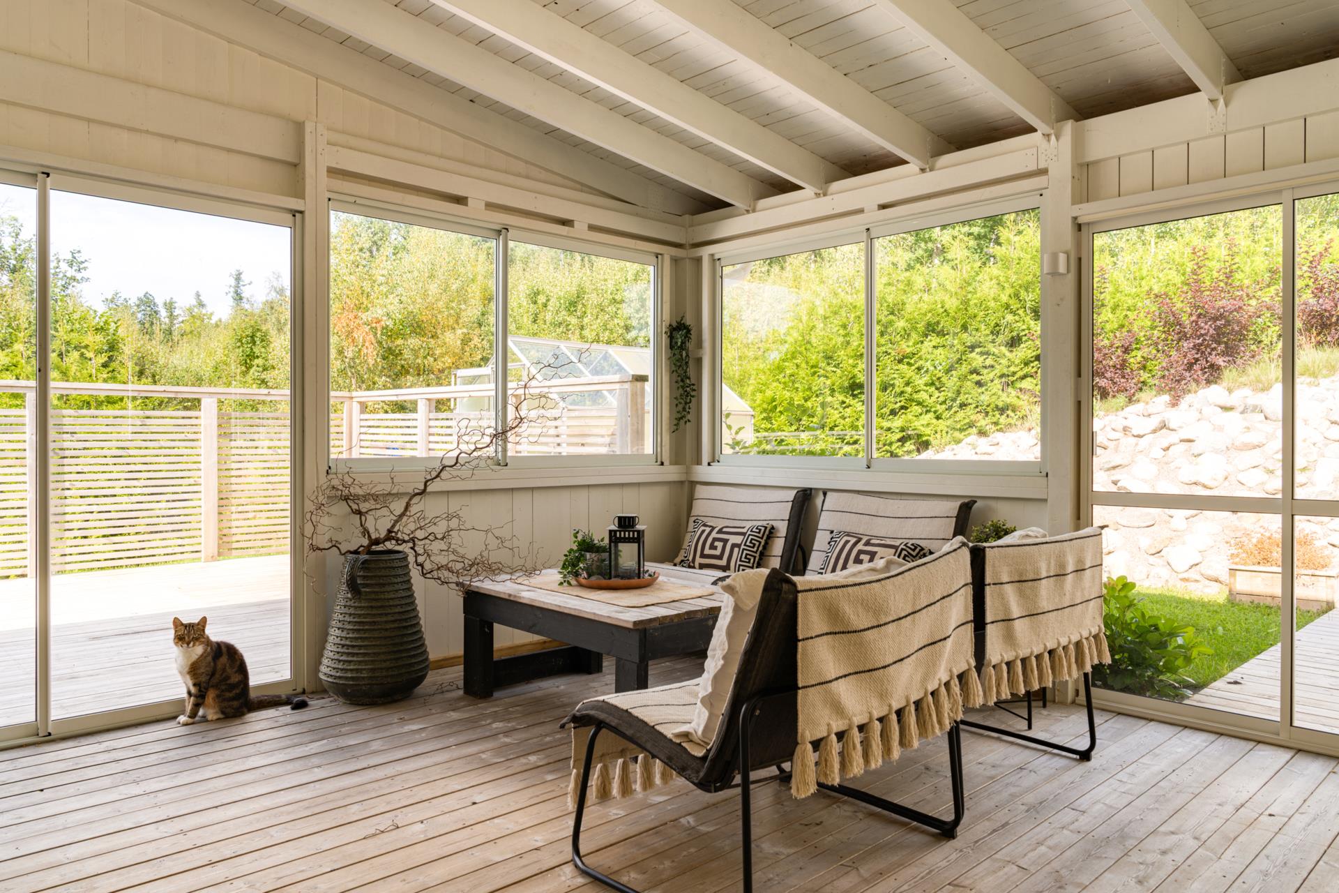 En-plansvilla uppförd 2018 med ett underbart, lantligt läge men endast några minuter från centrala staden. Här bor familjen lugnt och skyddat med sköna promenadstråk och närhet till Gustafsberg och Byfjorden. Här njuter Du av solens strålar från morgon till kväll från flera altaner och här finns dessutom ett uterum om ca 30 kvm. Ljust och luftigt med allt i ett plan. Huvudbyggnaden har öppen lösning mellan kök och vardagsrum, tre sovrum med möjlighet att göra ytterligare ett sovrum, två badrum, allrum/tv-rum med utgång till uterummet, tvättstuga/groventré. Insynskyddad innergård ramas in av naturen och två sidobyggnader om 20 respektive 15 kvm. Den större även förberedd för WC och pentry. Perfekt för uthyrning, tonåringen eller egen verksamhet. Solpaneler och frånluftsvärmepump med värmeåtervinning borgar för en fantastisk driftsekonomi och här finns också laddare för elbil. Välkommen på visning! Vi ses!