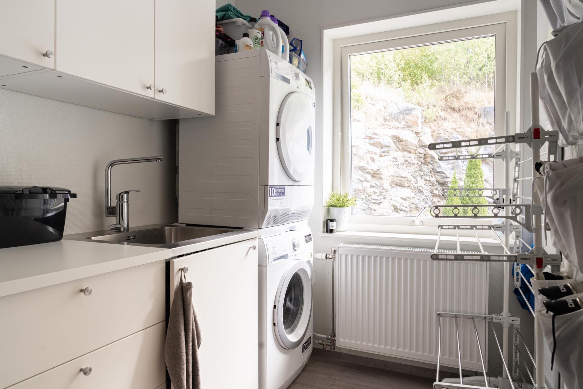 TVÄTTSTUGA/GROVENTRÉ, tvättmaskin, torktumlare, extra kyl/frys, frånluftsvärmepump och två garderober.