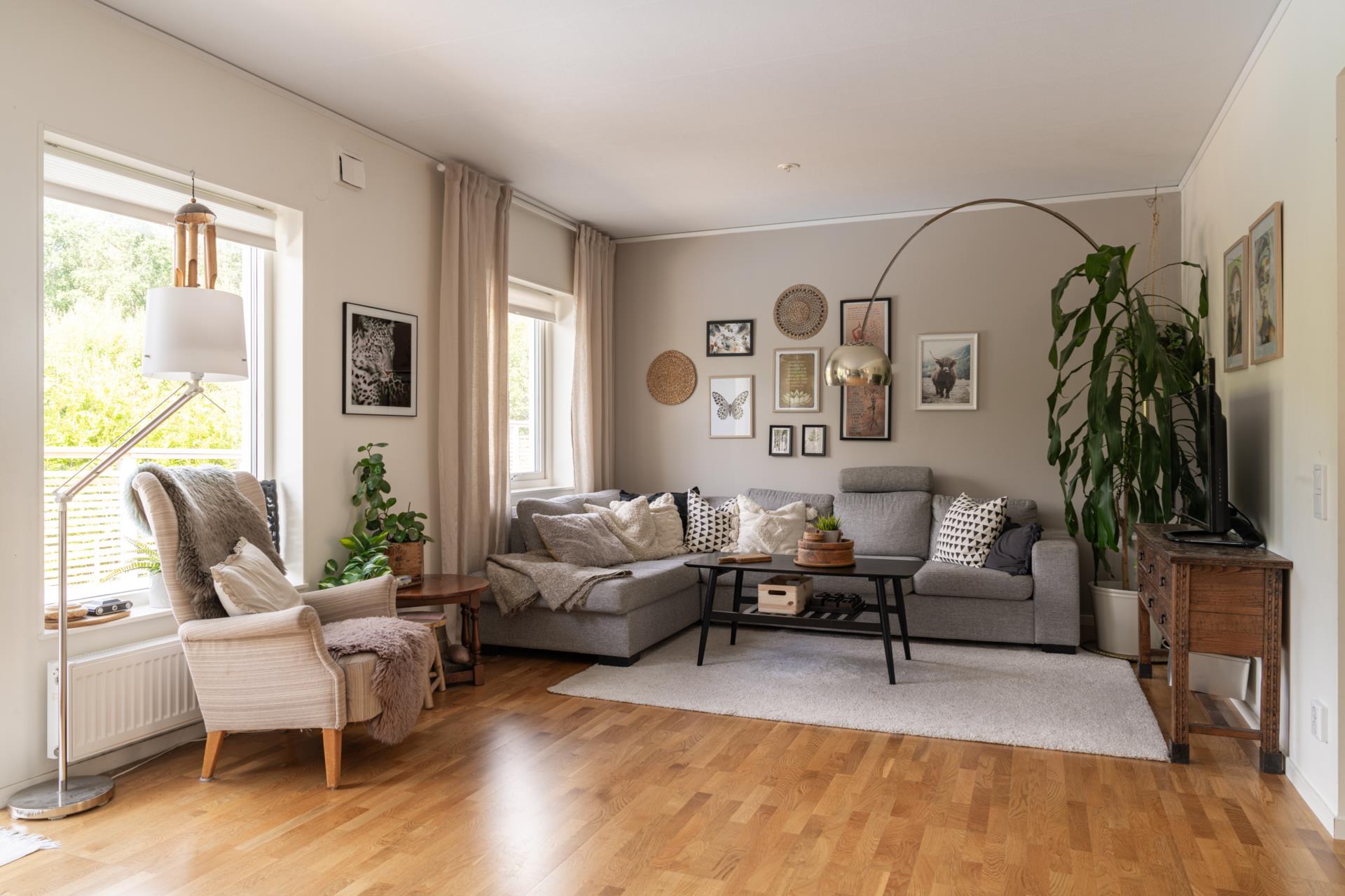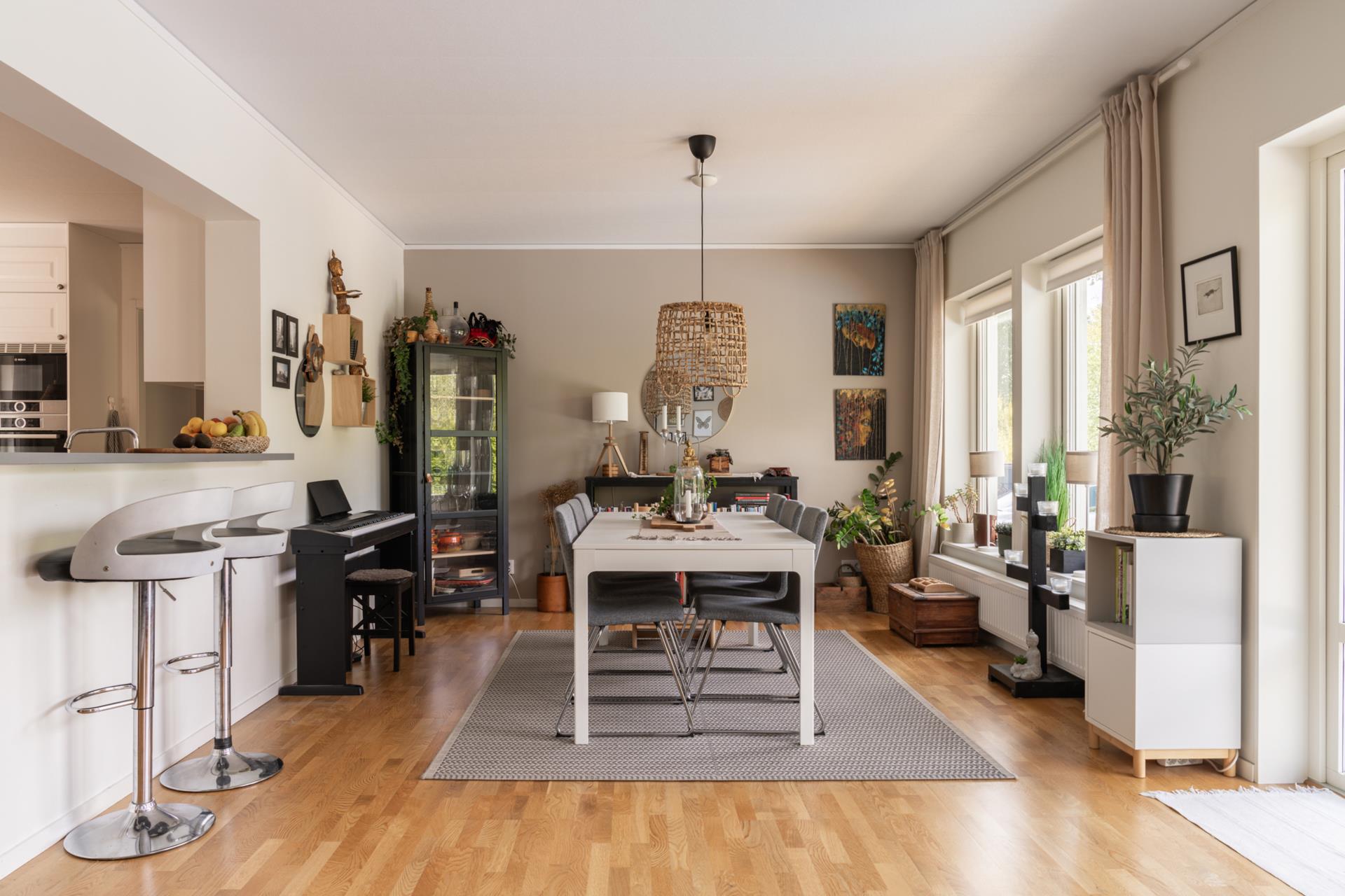VARDAGSRUM/ALLRUM med parkettgolv och utgång till altan. Härlig öppen lösning med köket. (Vardagsrummet går att avdela till ytterligare ett sovrum)
