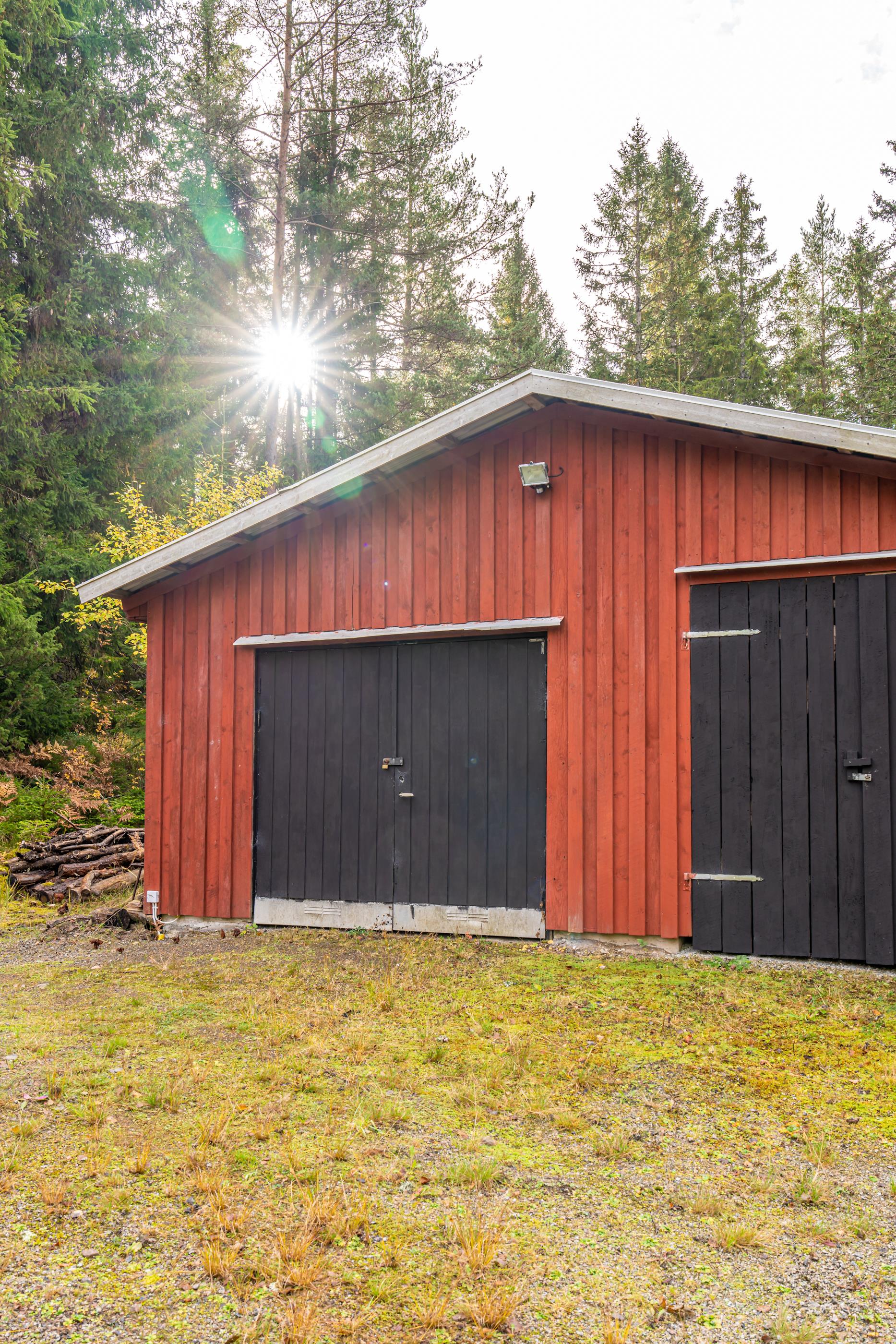 Utanför huset finns gott om plats för parkering på uppfarten samt goda förvaringsmöjligheter i både garage och förråd. Här bor ni bekvämt året runt, med skog, ängar och frisk lantluft som närmaste granne.