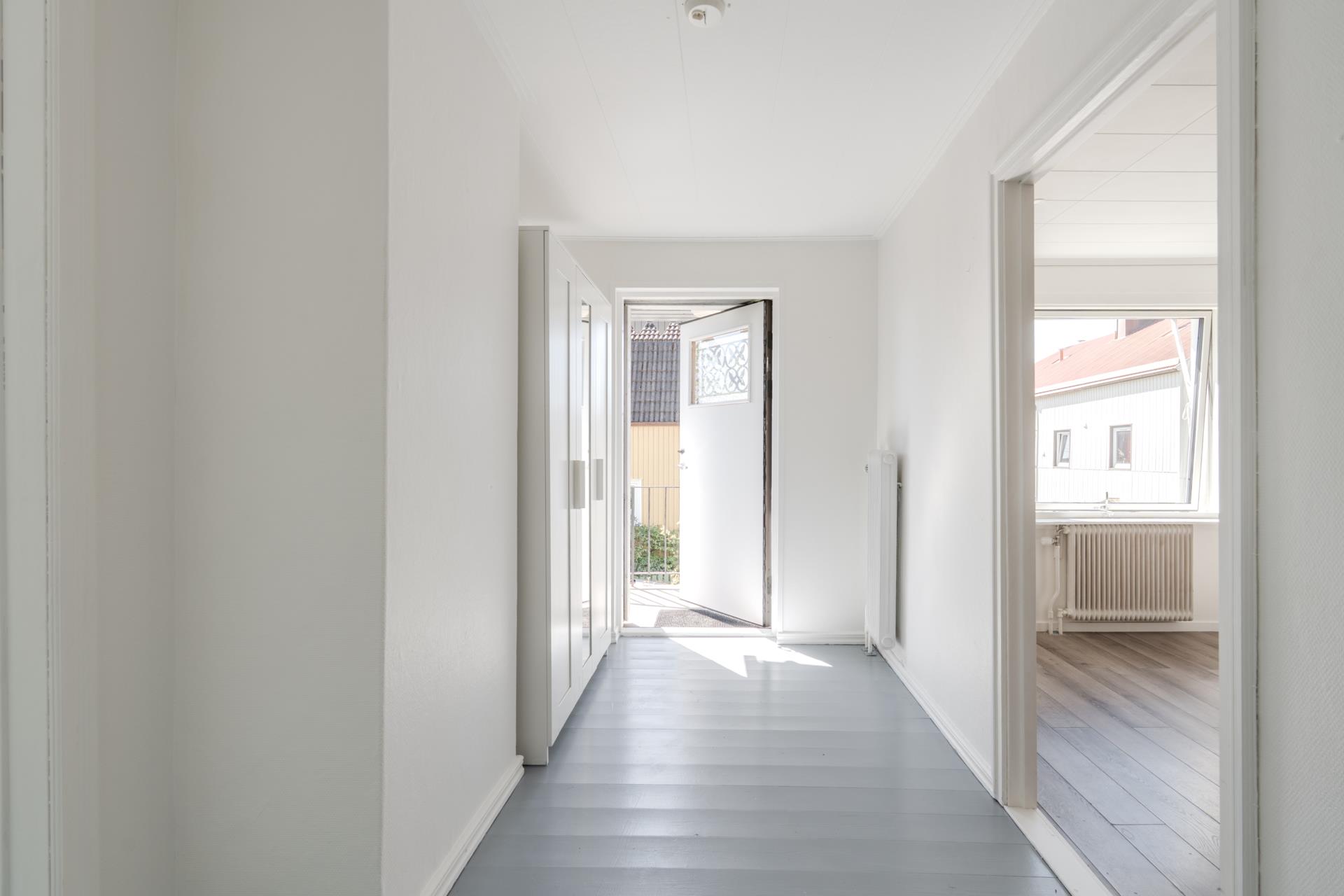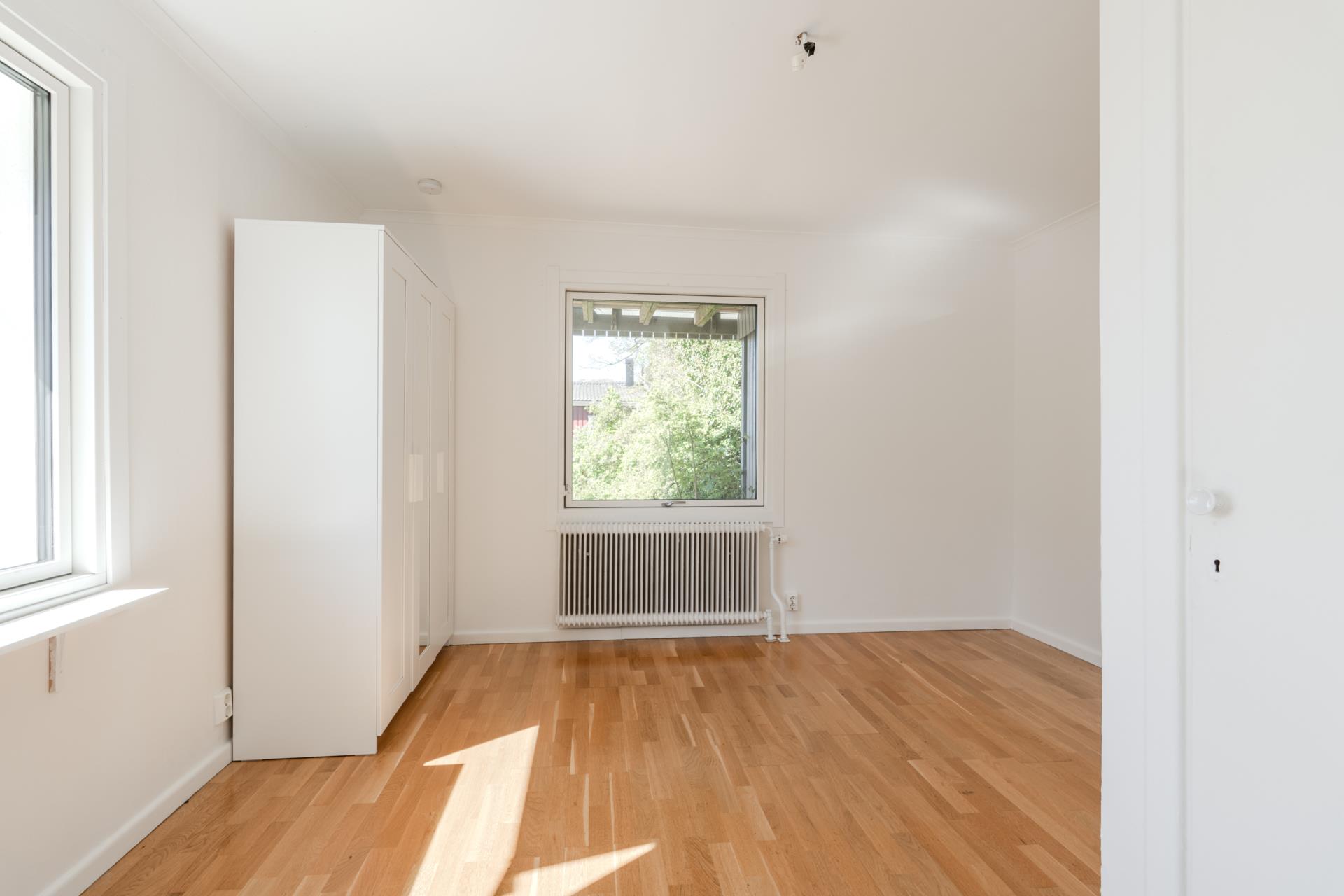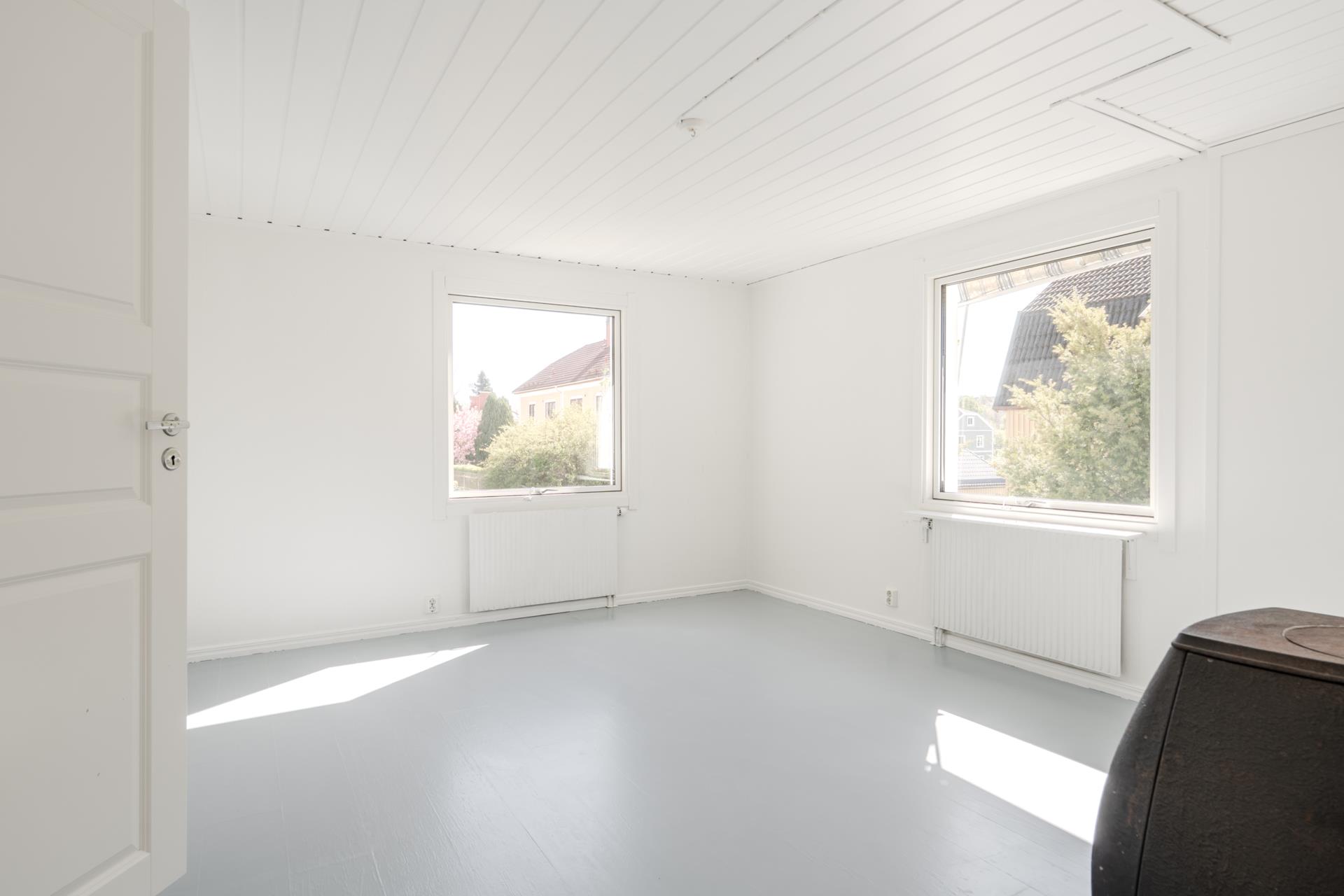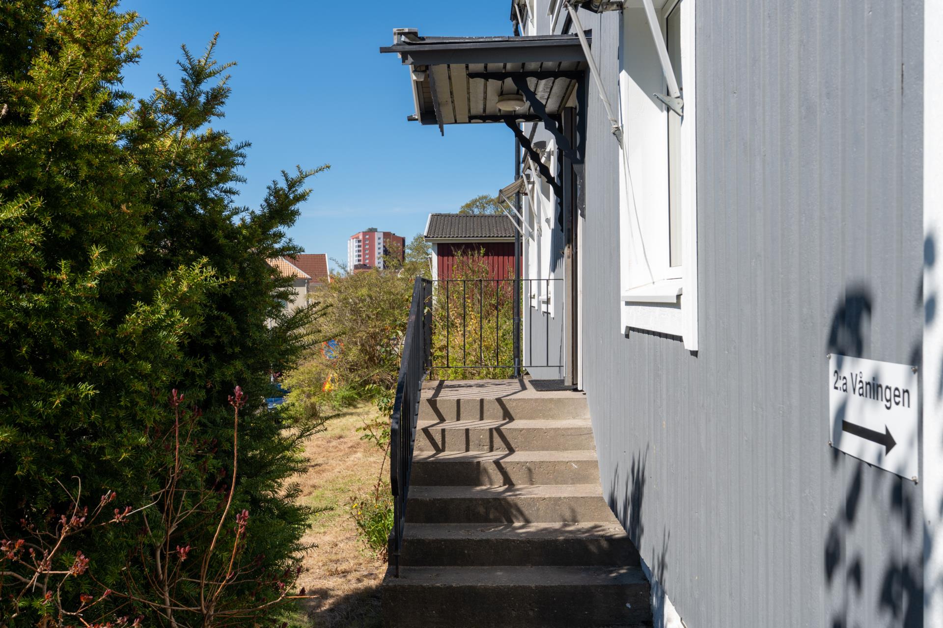 Lägenheten på övervåningen rymmer tre sovrum, vardagsrum, kök samt badrum med dusch. Från köket nås dessutom en härlig altan med fin utsikt – en naturlig plats för avkoppling.