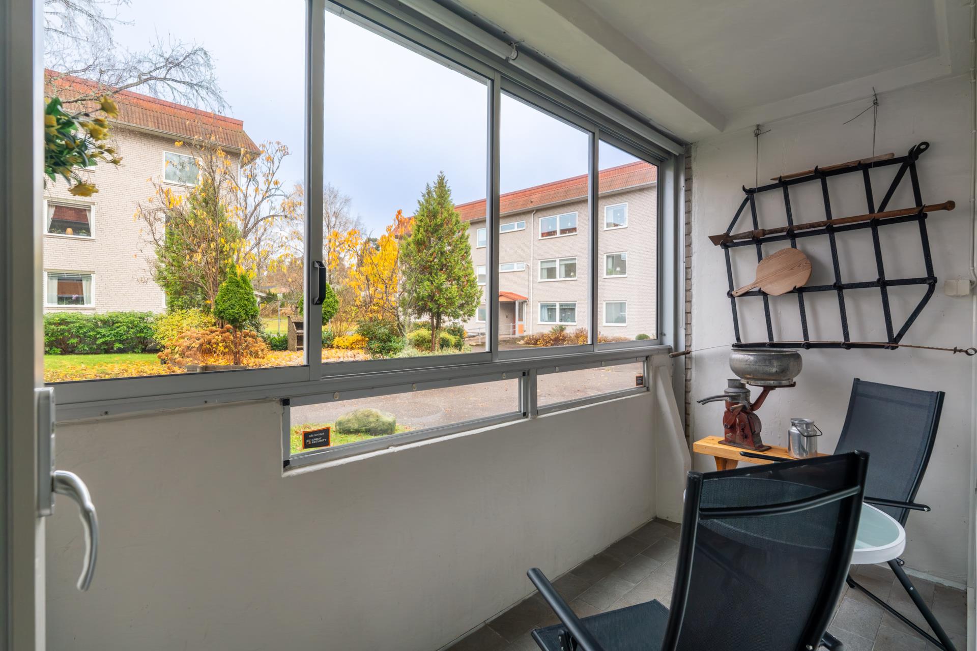En verkligt välvårdad och luftig trea med ett bekvämt läge i markplan. Stort helkaklat badrum med tvättmaskin, golvvärme och duschplats. Rymligt kök med matplats, vardagrum med fint parkettgolv och utgång till inglasad balkong med gott om plats, två stora sovrum varav ett med hela sex garderober. Här bor du i en otroligt välskött och trivsam förening. Välkommen på visning!