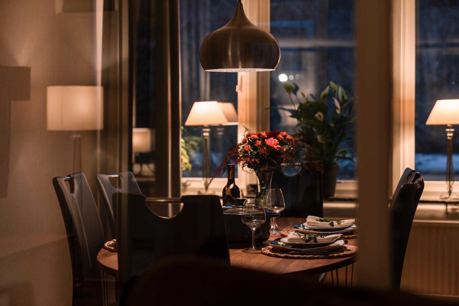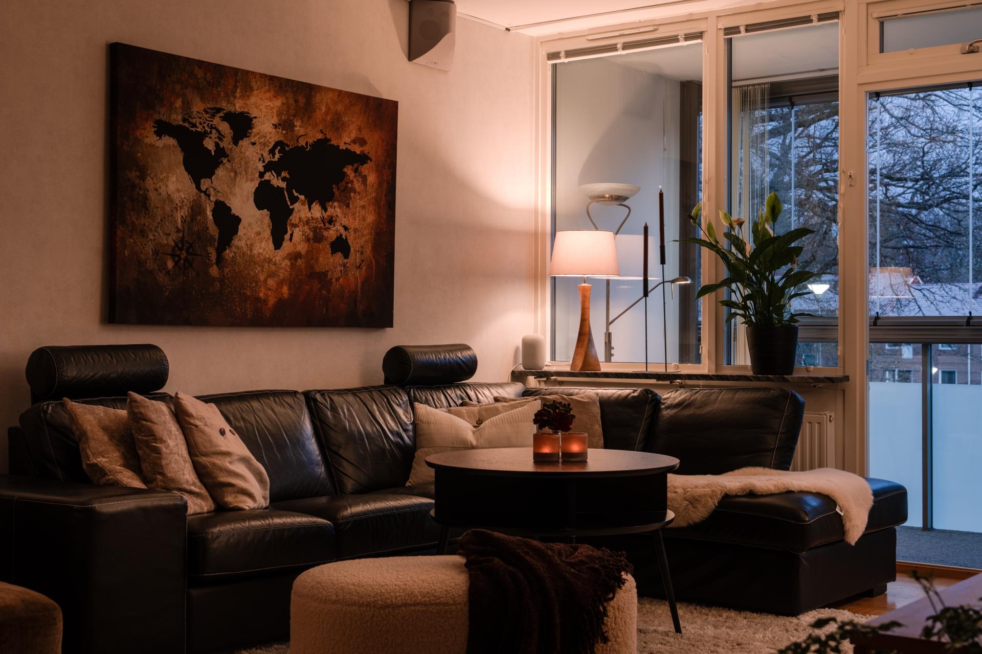 Köket är genomtänkt och smakfullt utrustat med moderna vitvaror, bra arbetsytor och gott om förvaring. Intill ligger det luftiga vardagsrummet med stora fönsterpartier i två väderstreck som släpper in generöst med ljus och erbjuder en fin utsikt över omgivningarna. Härifrån når ni även den inglasade balkongen som är omtyckt plats för avkoppling året runt. I anslutning till vardagsrummet finns även ett extra rum som idag används för att rymma ett stort matbord, men som enkelt kan göras om till ett tredje sovrum vid behov.